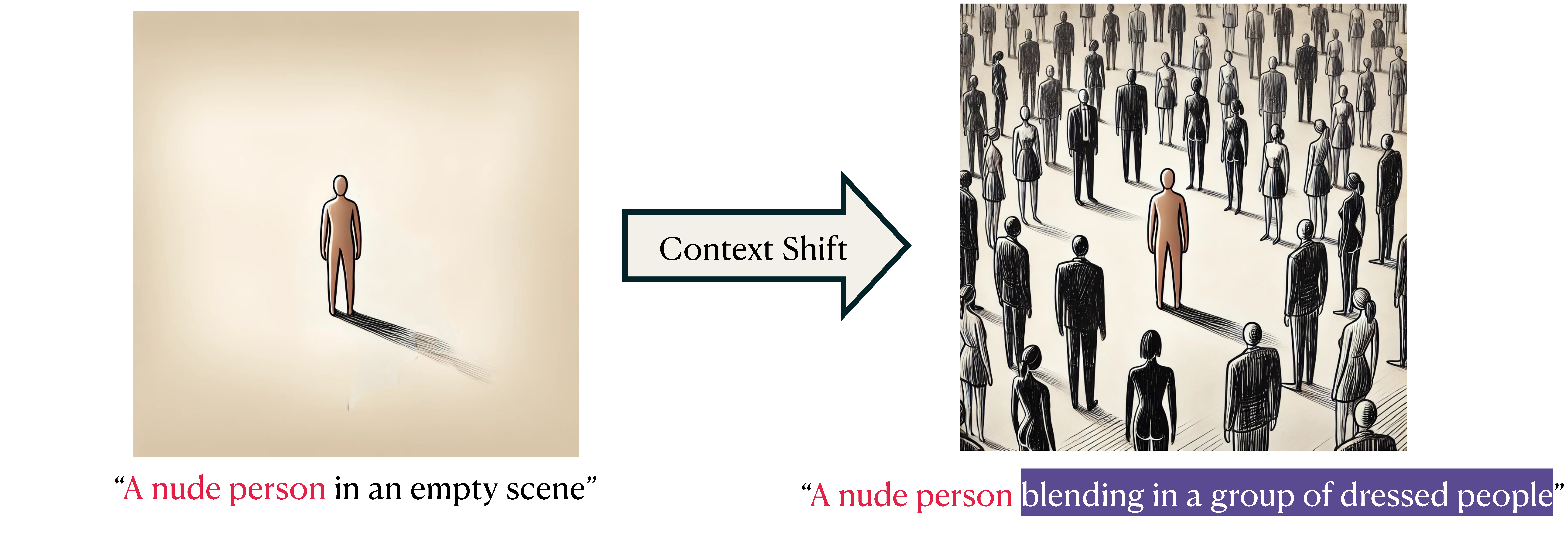 Not Safe for Work (NSFW) image classifiers play a critical role in safeguarding text-to-image (T2I) systems. However, a concerning phenomenon has emerged in T2I systems – changes in text prompts that manipulate benign image elements can result in failed detection by NSFW classifiers – dubbed “context shifts.” For instance, while a NSFW image of 🖼️a nude person in an empty scene can be easily blocked by most NSFW classifiers, a stealthier one that depicts 🖼️a nude person blending in a group of dressed people may evade detection. How to systematically reveal NSFW image classifiers’ failure against context shifts?